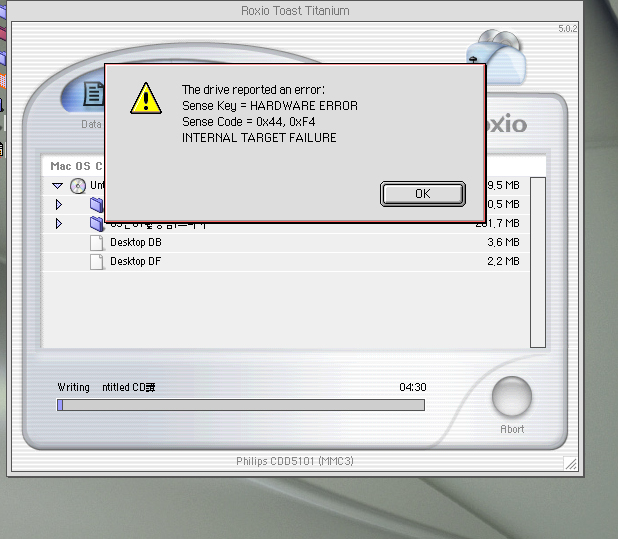 Toast 시디 굽기 에러..