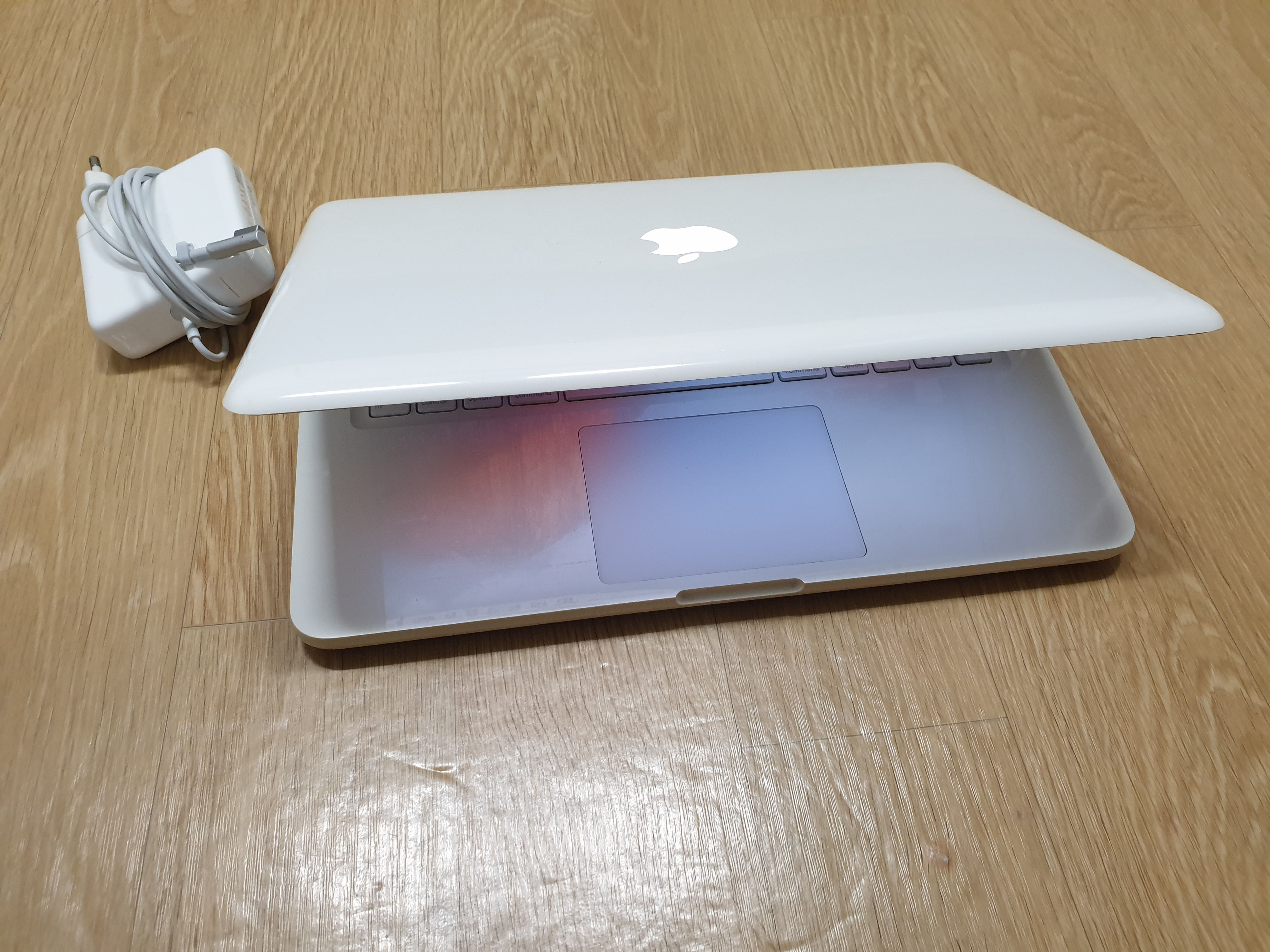 구성품은 배터리 장착된 화이트맥북과 애플정품 충전기입니다