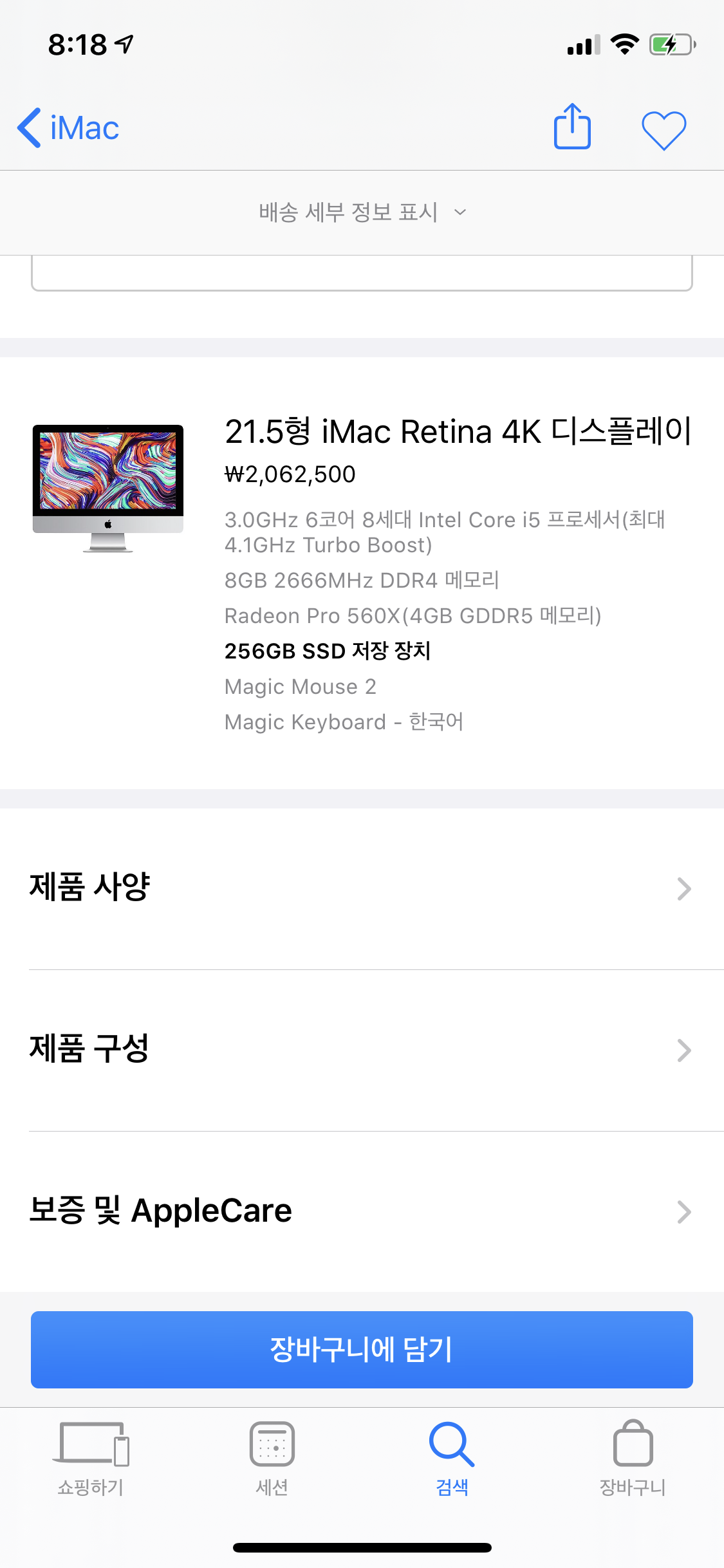 2019 아이맥 21.5인치 고급형 (cto 256GB 업그레이드) 팝니다.