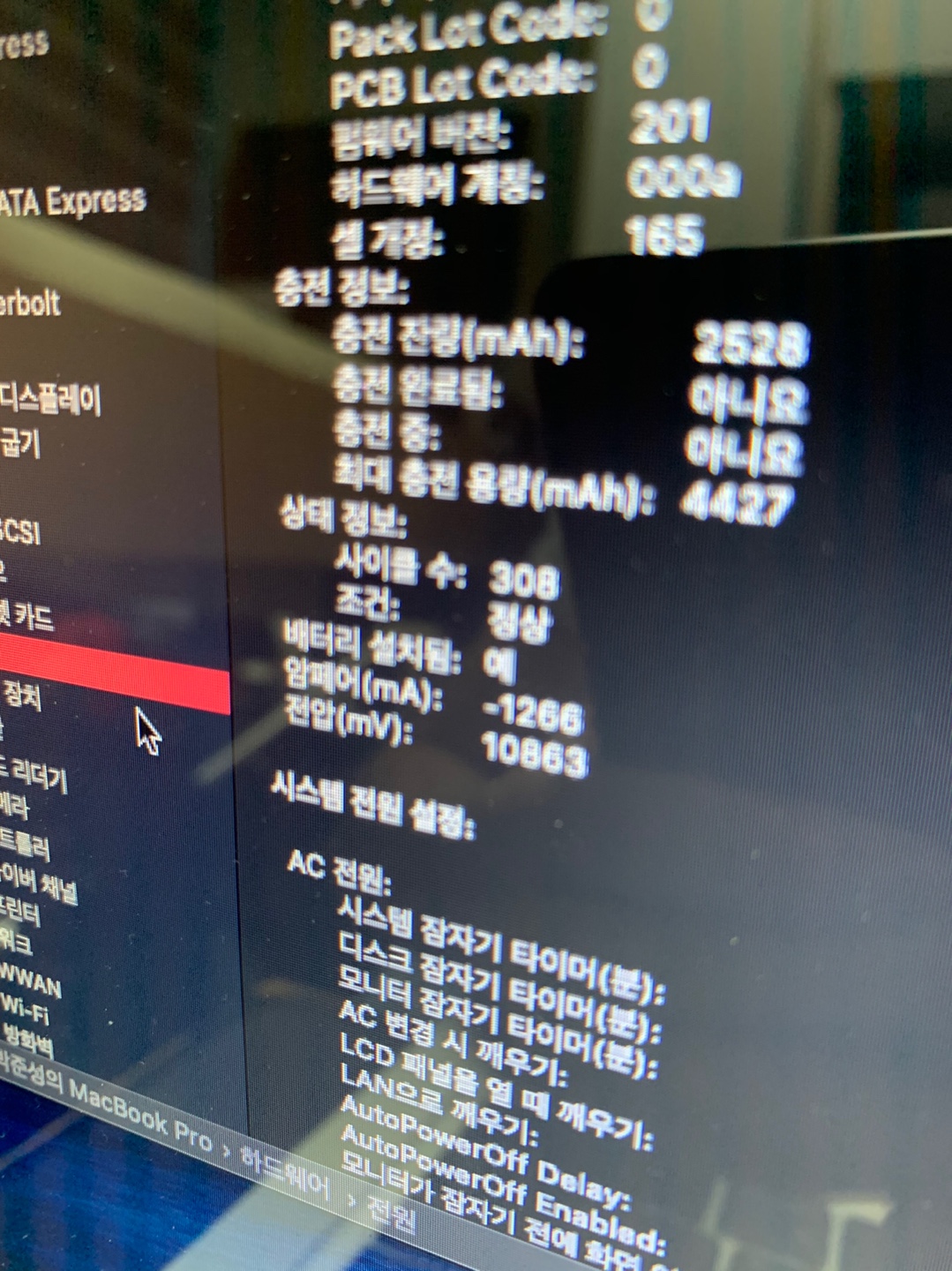 배터리 사이클은 308 입니다