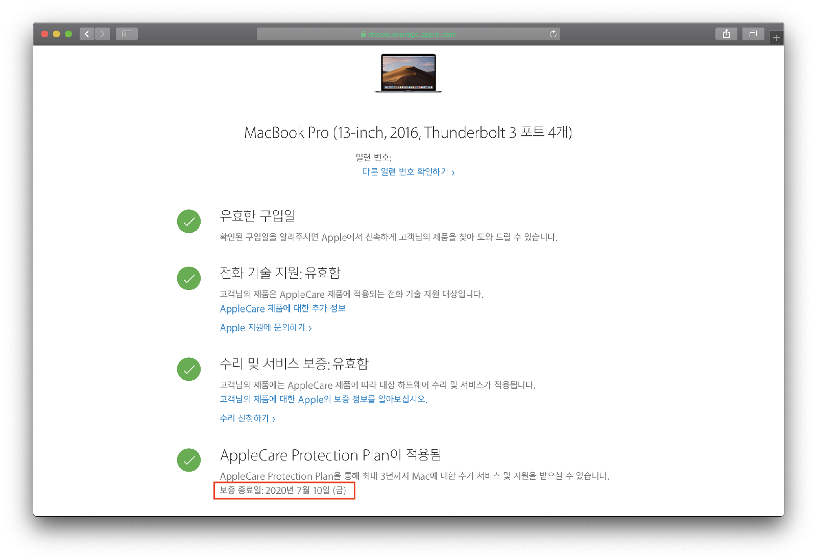- 보증기간 : 2020. 7. 10 (애플케어 구매, 기한내 무상AS)