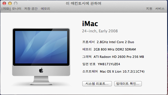 집에서 인터넷 서핑 및 음악감상용으로만 사용한 아이맥입니다