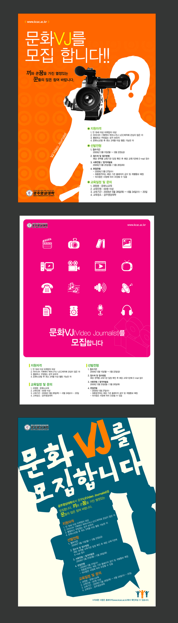 2번은 왠지 광고지 느낌이 나는데...그래도 2번이 맘에 드네요..^^ 핑크색 박스를 필름처럼 표현하면은 어떨까요...?? 그냥 일렬로 놓으면 재미 없으니 약간 사선으로.....음...... 암튼 이런 크리에이티브한 작업을 하는 모든 분들 존경합니다.^^